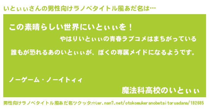 | ヒーロー風カッコイイあだ名 | 『ネオイトィィ』『仮面イトダー』 |