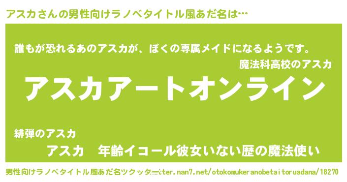 | 女子向けラノベタイトル風あだ名 | 『アスカ姫と円卓の騎士』 |
