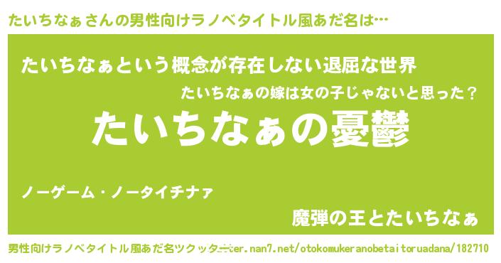 | 胡散臭い通販商品みたいなあだ名 | 『必ず成功する水晶球…その名も「たいちなぁ」』 |