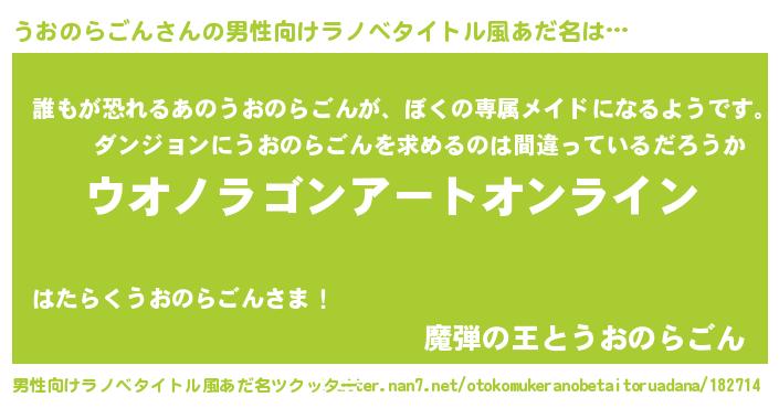 | 胡散臭い通販商品みたいなあだ名 | 『億万長者になれる霊験あらたかなお札…その名も「うおのらごん」』 |