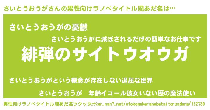 | 女子向けラノベタイトル風あだ名 | 『シンデレラさいとうおうが家の靴箱館』 |