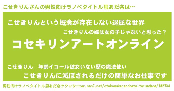 こせきりんさんの男性向けラノベタイトル風あだ名をツクッター!