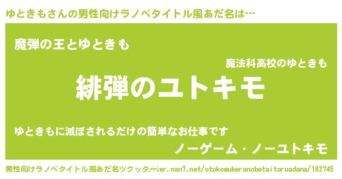 | 意味不明あだ名 | 『住所不定無職ゆときも(1歳)』 |