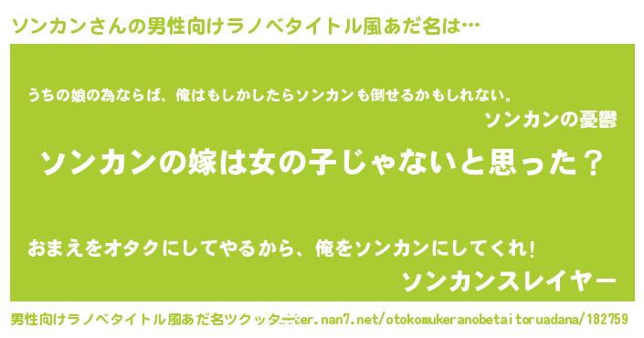 | ヘコむあだ名 | 『ソンっちょ』『なまこ酢』 |