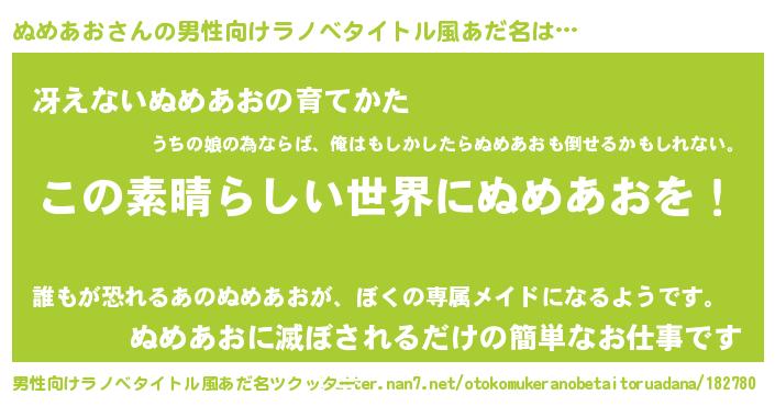| 意味不明あだ名 | 『住所不定無職ぬめあお(43歳)』 |
