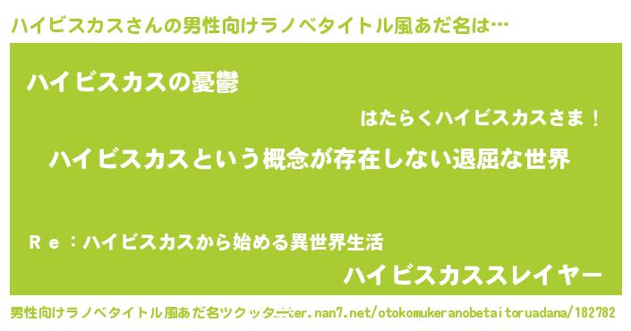 | 女子向けラノベタイトル風あだ名 | 『ハイビスカスの契約王妃』 |