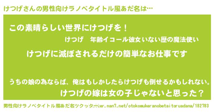 | 意味不明あだ名 | 『住所不定無職けつげ(71歳)』 |