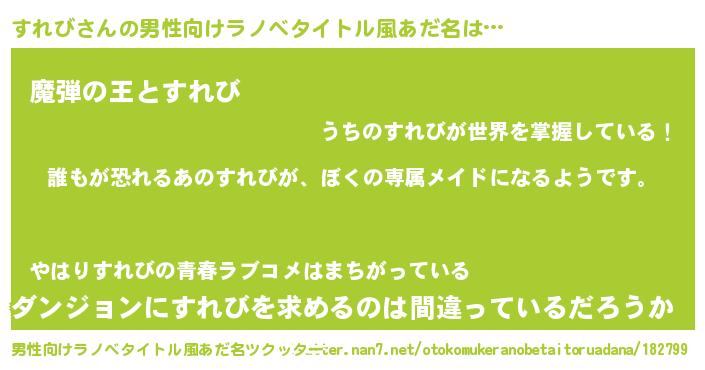 | 女子向けラノベタイトル風あだ名 | 『異世界でカフェすれびを開店しました。』 |