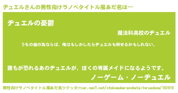 | 女子向けラノベタイトル風あだ名 | 『ヂュエルの婚約者』 |