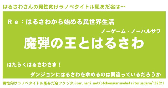 | ヒーロー風カッコイイあだ名 | 『仮面ハルダー』『最強戦士ハルサワ』 |