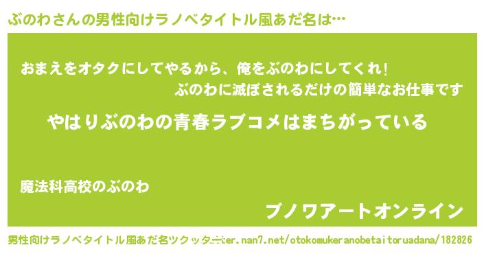 | 女子向けラノベタイトル風あだ名 | 『ぶのわの雑貨屋さん』『ぶのわ恋絵巻』 |