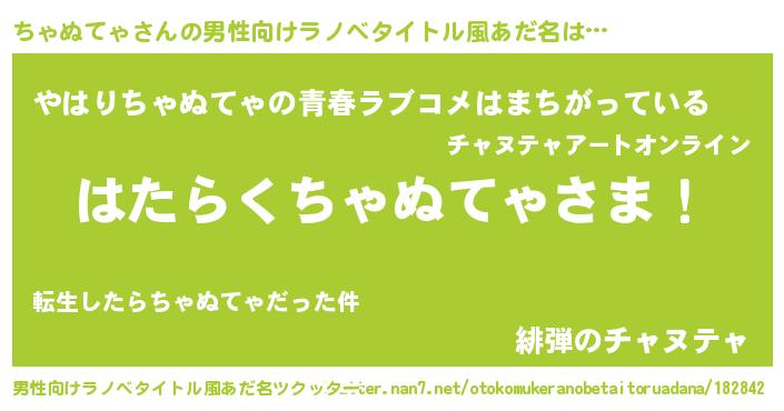 | 胡散臭い通販商品みたいなあだ名 | 『世界が平和になる高級そうな壺…その名も「ちゃぬてゃ」』 |