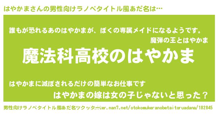 | 女子向けラノベタイトル風あだ名 | 『はやかまアンティーク』 |