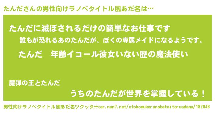 たんださんの男性向けラノベタイトル風あだ名をツクッター!
