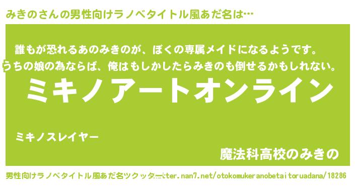 | ヒーロー風カッコイイあだ名 | 『スーパーミキノ』『ネオミキノ』 |