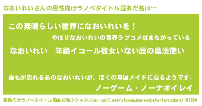 | 女子向けラノベタイトル風あだ名 | 『なおいれいの玉の輿計画!』 |