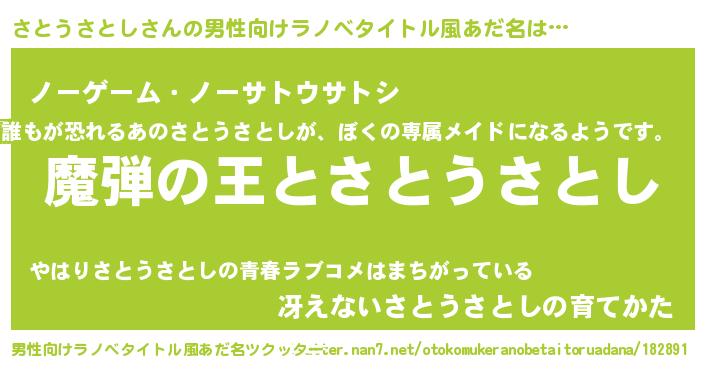 | 意味不明あだ名 | 『住所不定無職さとうさとし(13歳)』 |