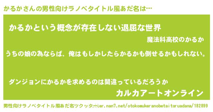 | 胡散臭い通販商品みたいなあだ名 | 『運命の人と巡り会える高級そうな壺…その名も「かるか」』 |