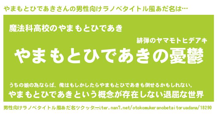 | 女子向けラノベタイトル風あだ名 | 『(仮)やまもとひであきのやんごとなき事情』 |