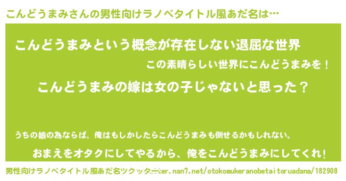 | 女子向けラノベタイトル風あだ名 | 『こんどうまみ様がみてる』 |