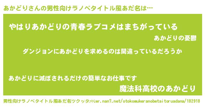 | 女子向けラノベタイトル風あだ名 | 『あかどりは平凡を望む』 |
