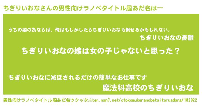 | 女子向けラノベタイトル風あだ名 | 『ちぎりいおなの卵を拾いまして』 |
