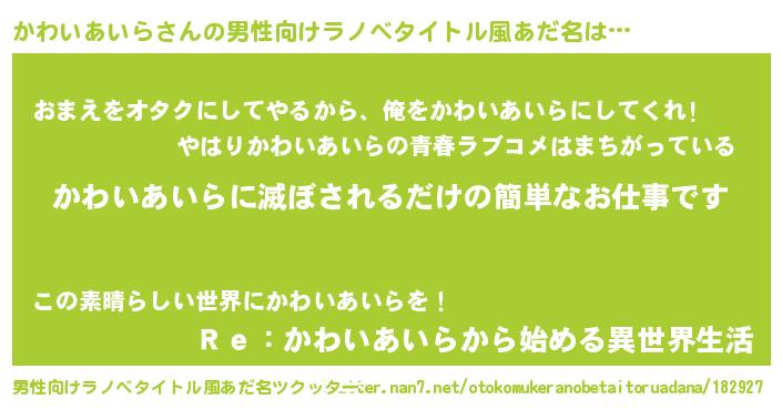 | 胡散臭い通販商品みたいなあだ名 | 『モンドセレクションを受賞したマグネット磁石…その名も「かわいあいら」』 |