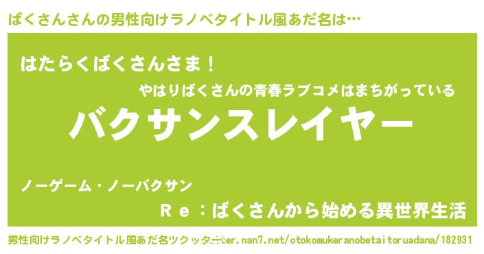 | 意味不明あだ名 | 『めかぶ科ばくさん属』『自称ばくさん』 |