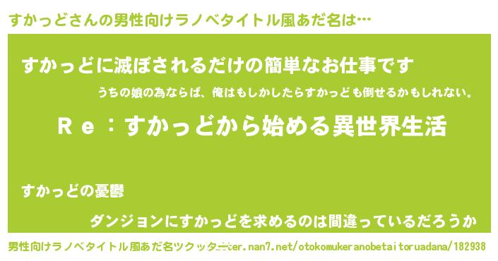 | 女子向けラノベタイトル風あだ名 | 『闇のすかっど』『すかっどは平凡を望む』 |