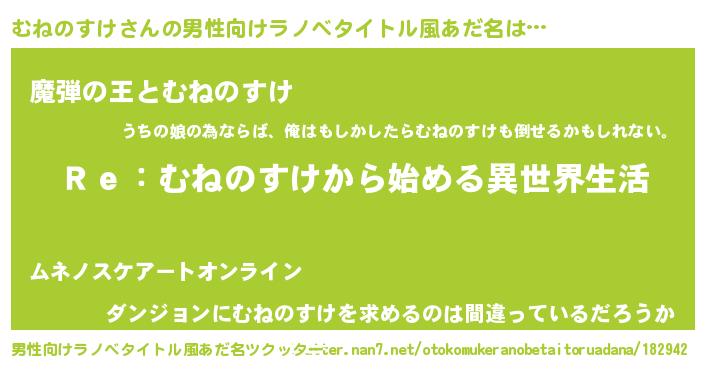 | 意味不明あだ名 | 『自称むねのすけ』『ペロリンむねのすけ』 |