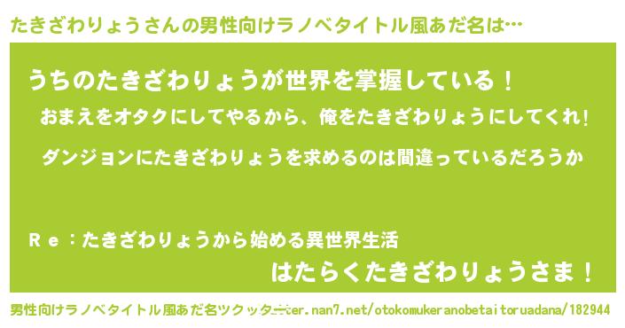 | 女子向けラノベタイトル風あだ名 | 『たきざわりょうの卵を拾いまして』 |