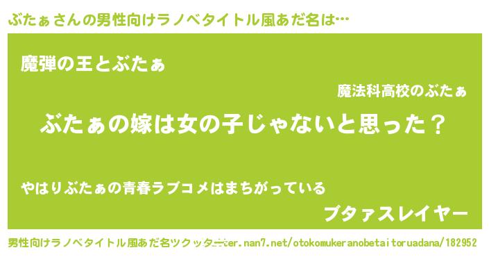| 女子向けラノベタイトル風あだ名 | 『ぶたぁ様がみてる』 |