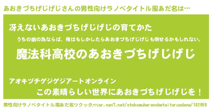 | 女子向けラノベタイトル風あだ名 | 『あおきづちげじげじアンティーク』 |