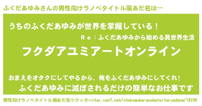 | 女子向けラノベタイトル風あだ名 | 『ふくだあゆみ姫と円卓の騎士』 |