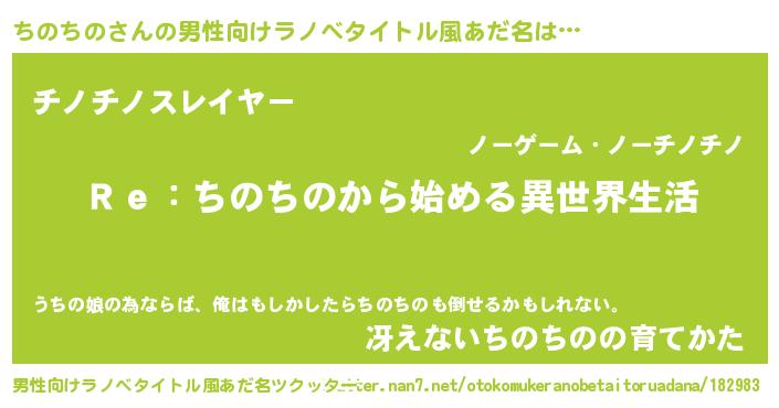 | ヒーロー風カッコイイあだ名 | 『究極戦士チノチノ』『愛の使者ちのちの』 |