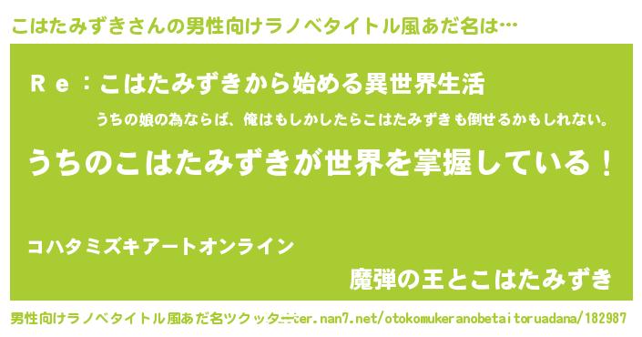 | 意味不明あだ名 | 『自称こはたみずき』 |