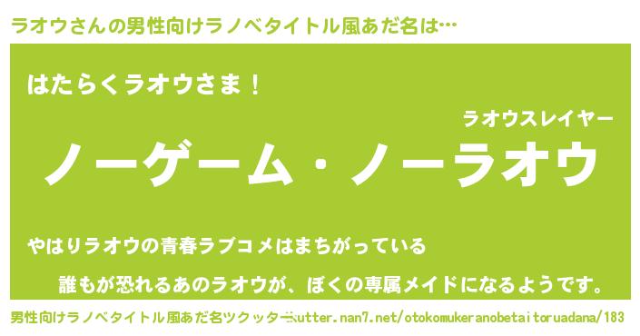 | 女子向けラノベタイトル風あだ名 | 『ラオウ恋絵巻』『首の姫と首なしラオウ』 |