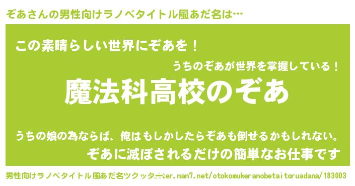 | 女子向けラノベタイトル風あだ名 | 『ぞあなんてお断りですっ。』 |
