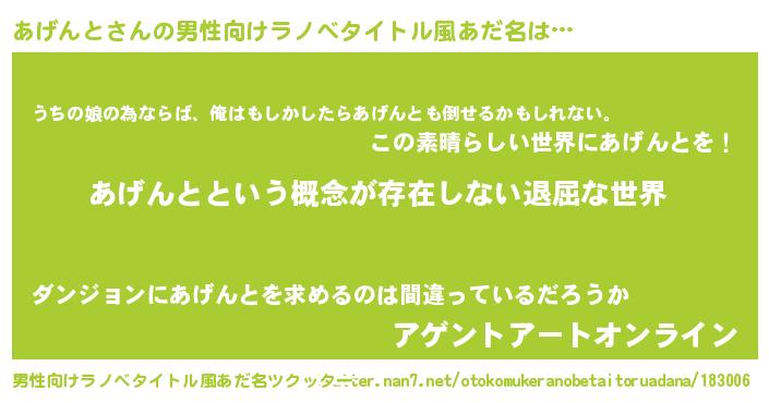 | ファンタジー風あだ名 | 『アゲディッシュ』『アゲフェル』 |
