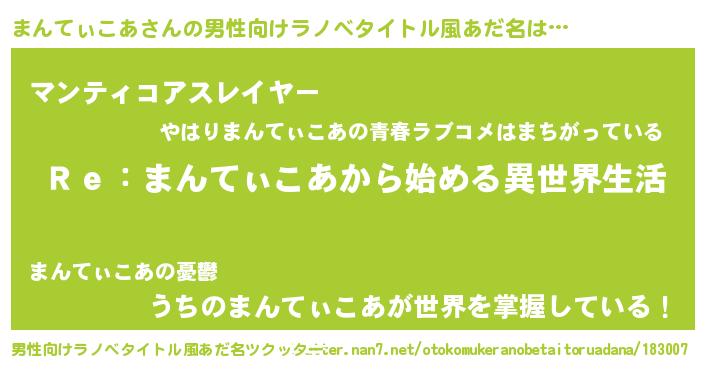 | 女子向けラノベタイトル風あだ名 | 『まんてぃこあストレイドッグス』 |
