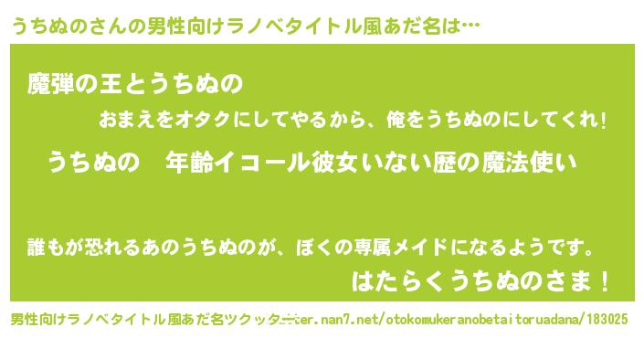 | 胡散臭い通販商品みたいなあだ名 | 『あなたにだけ特別に提供する100年もののヴィンテージワイン…その名も「うちぬの」』 |