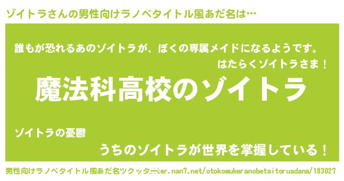 | 女子向けラノベタイトル風あだ名 | 『ゾイトラなんてお断りですっ。』 |