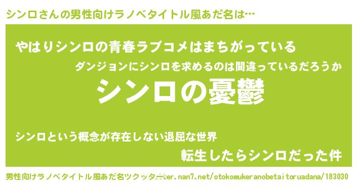 | 胡散臭い通販商品みたいなあだ名 | 『必ず成功する霊験あらたかなお札…その名も「シンロ」』 |