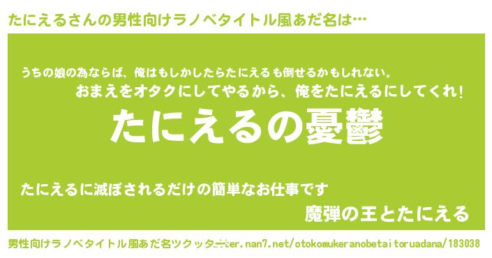 | 胡散臭い通販商品みたいなあだ名 | 『必ず成功するブレスレット…その名も「たにえる」』 |