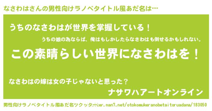 | 意味不明あだ名 | 『住所不定無職なさわは(50歳)』 |