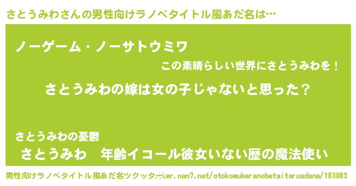 | 女子向けラノベタイトル風あだ名 | 『さとうみわ様がみてる』 |