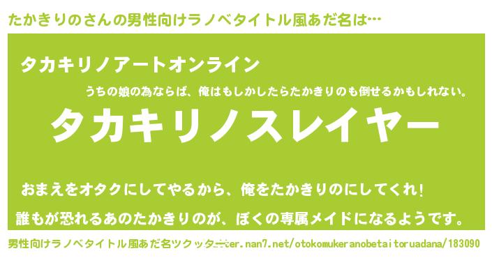 たかきりのさんの男性向けラノベタイトル風あだ名をツクッター!