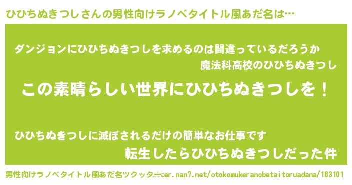 | 女子向けラノベタイトル風あだ名 | 『乙女ゲームの破滅フラグしかない悪役ひひちぬきつしに転生してしまった…』 |
