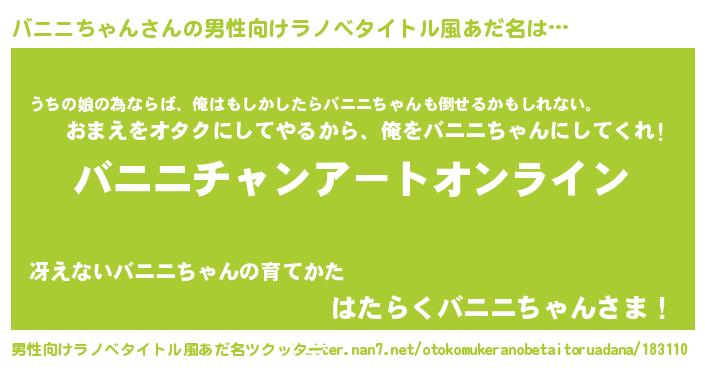 | 胡散臭い通販商品みたいなあだ名 | 『億万長者になれるブレスレット…その名も「バニニちゃん」』 |