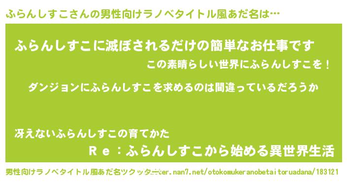 | 女子向けラノベタイトル風あだ名 | 『ふらんしすこは平凡を望む』 |